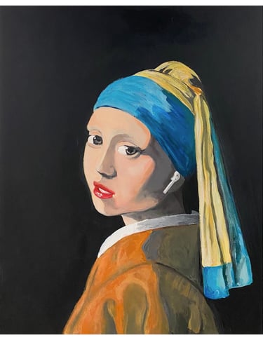 Girl with an Airpod, acrylique sur toile, 40x50cm, 300 euros